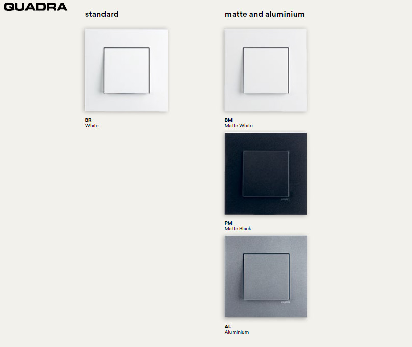 A Quadro 45,moduláris mechanizmusokat tartalmazó termékcsalád a portugál Efapel gyár terméke. A gondos tervezésnek köszönhetően szerelése rendkívül gyors és kényelmes, hagyományos süllyesztett szerelvényekhez, energiaoszlopokba, padlódobozokba, parapet csatornákba építve egyaránt.