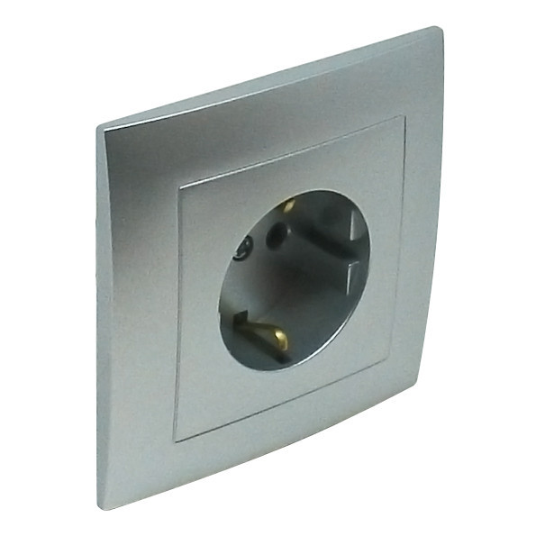 Komplett csavarmentes gyerekzáras Schuko típusú csatlakozó aljzat, 16A-250V, alumínium színű