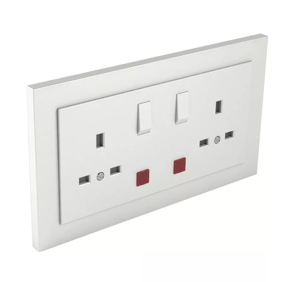 Komplett brit típusú dupla csatlakozó aljzat visszajelzővel, 13A-250V, jég színű