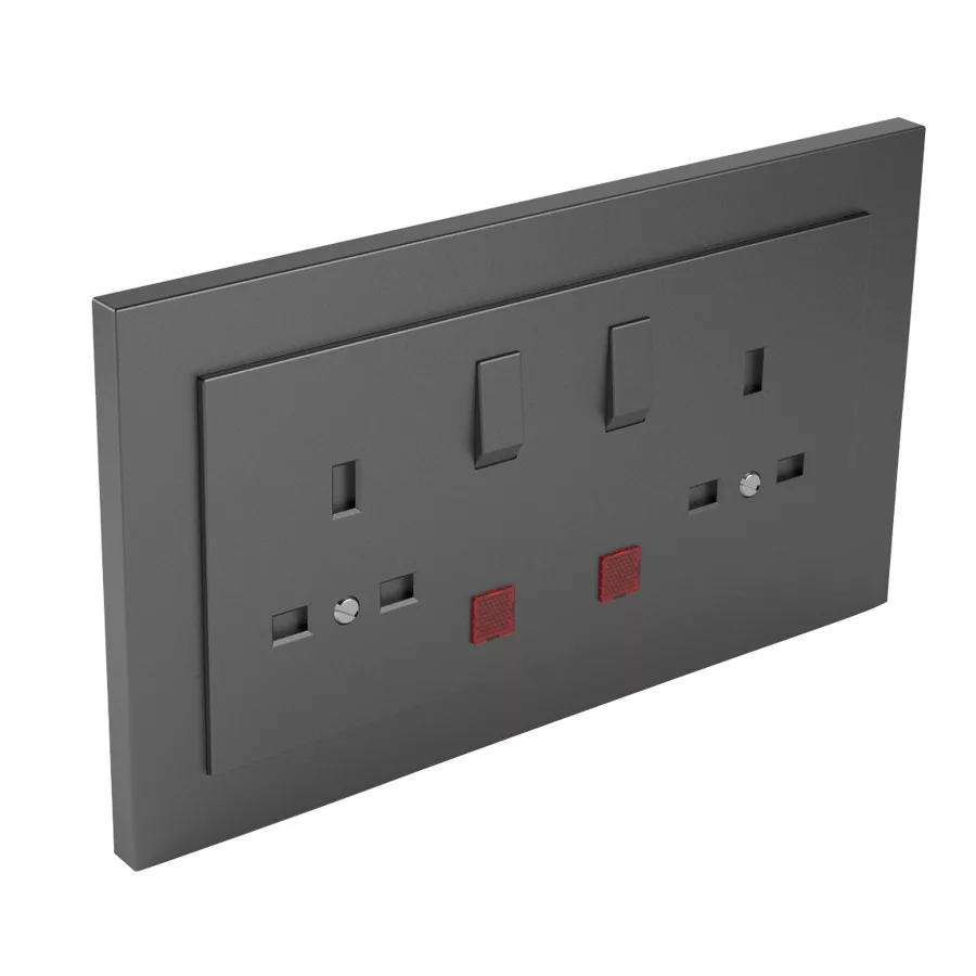 Komplett brít típusú dupla dugalj (A keret és a fedlap egybe van öntve, nem szerelhető szét), irányfénnyel.