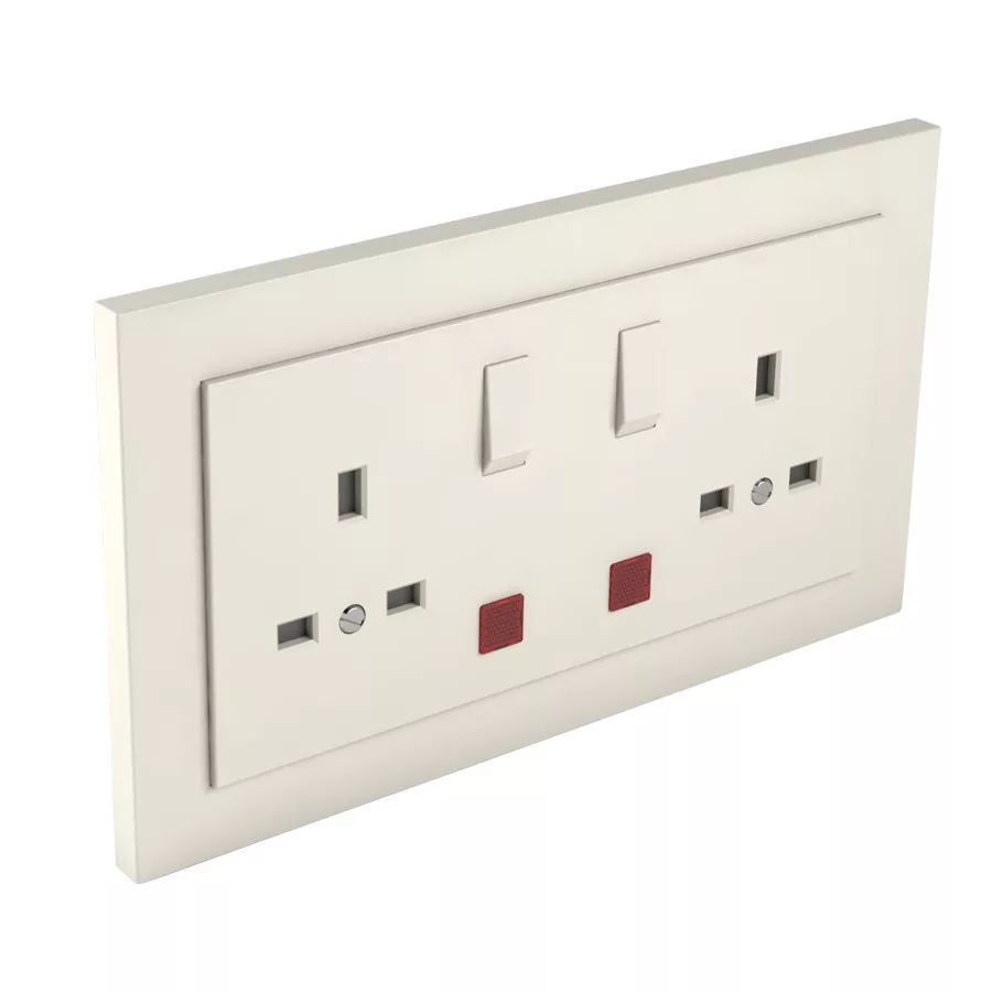 Komplett brit típusú dupla csatlakozó aljzat visszajelzővel, 13A-250V, elefántcsont színű