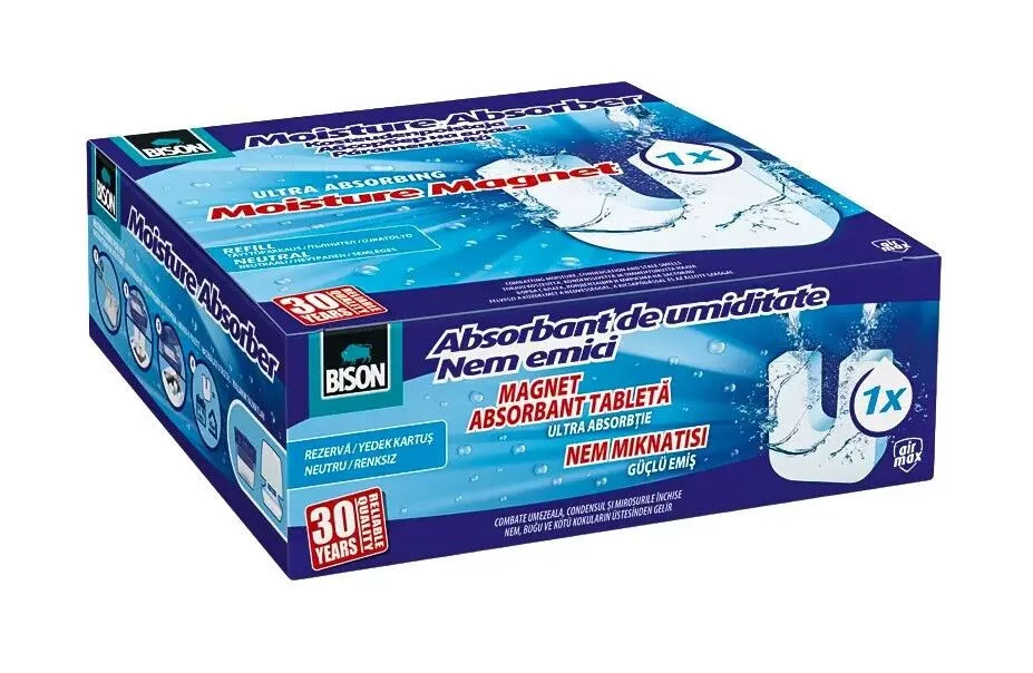 A granulátum magába zárja a levegőben lévő felesleges nedvességet, ezáltal segít megelőzni a penészképződést, dohos szagokat és a nedvesség okozta károkat. A BISON Páramentesítő AIRMAX utántöltő kompatibilis a legtöbb szabványos páramentesítő készülékkel, különösen a BISON AIRMAX rendszerekkel.
