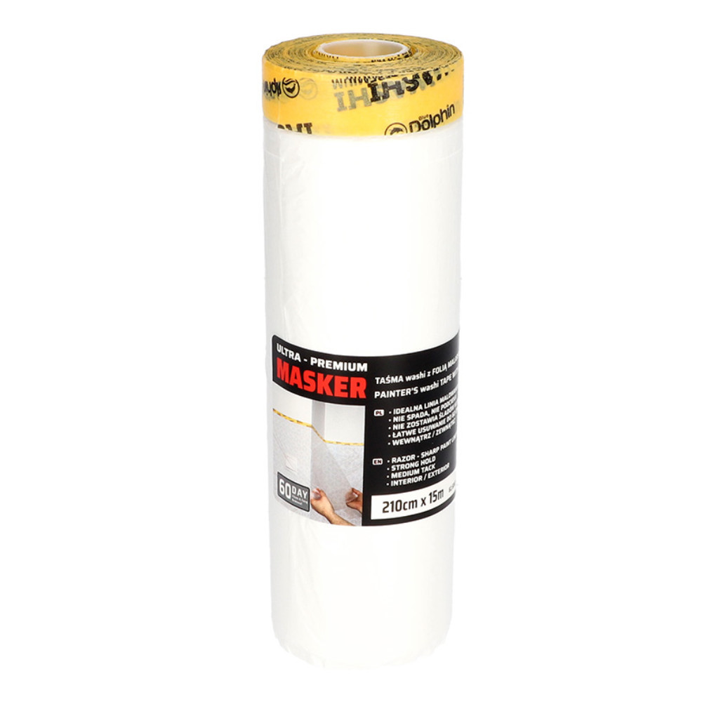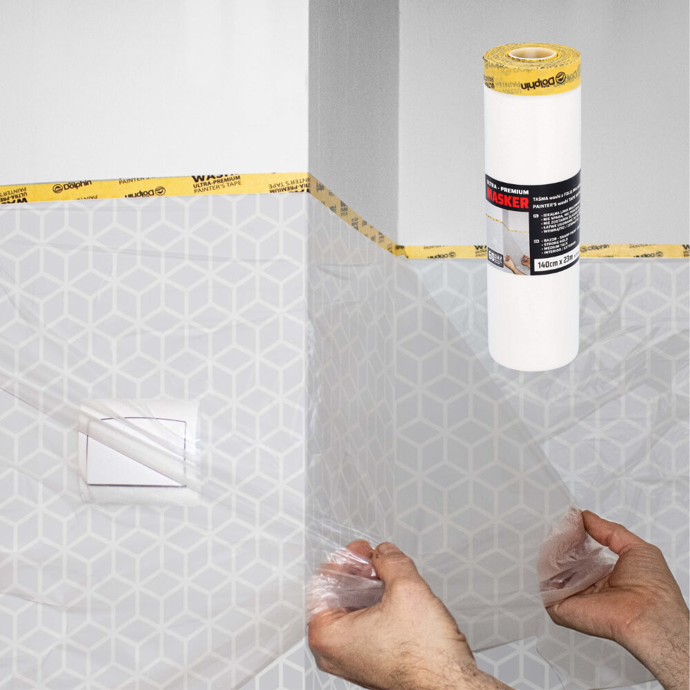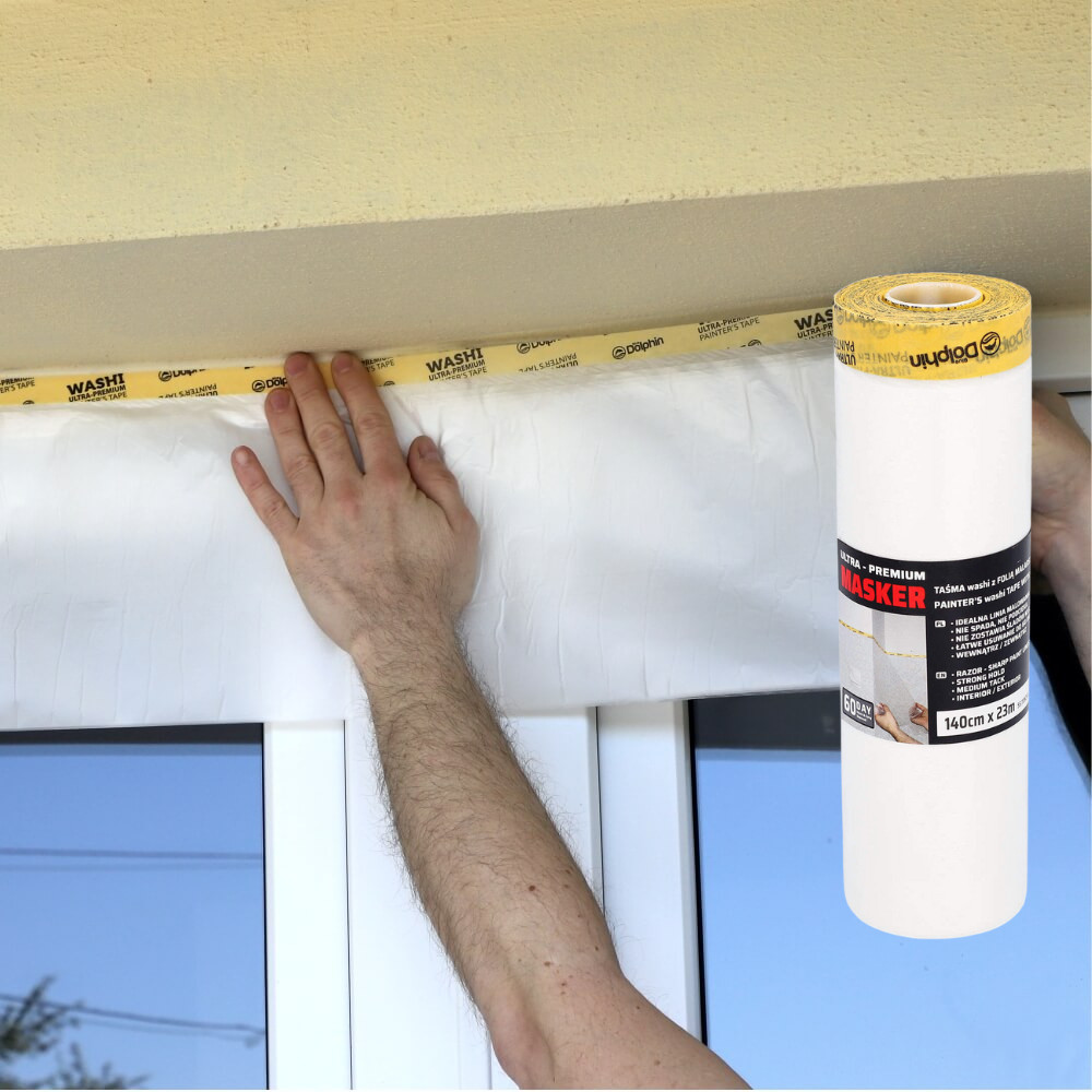 A Blue Dolphin Masker Washi elektrosztatikus festőfólia professzionális megoldás ablakok, ajtók, bútorok, konyhaszekrények, csempék, tapéták és egyéb nagy felületek hatékony maszkolására. A beépített washi szalag rendkívül vékony, mégis erős rizspapírból készül, amely megakadályozza a festék aláfolyását, így éles, tiszta festési élt biztosít.