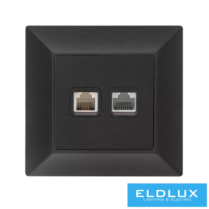 ELDGROUND RJ11 TEL + RJ45 Cat.5e UTP aljzat Fekete