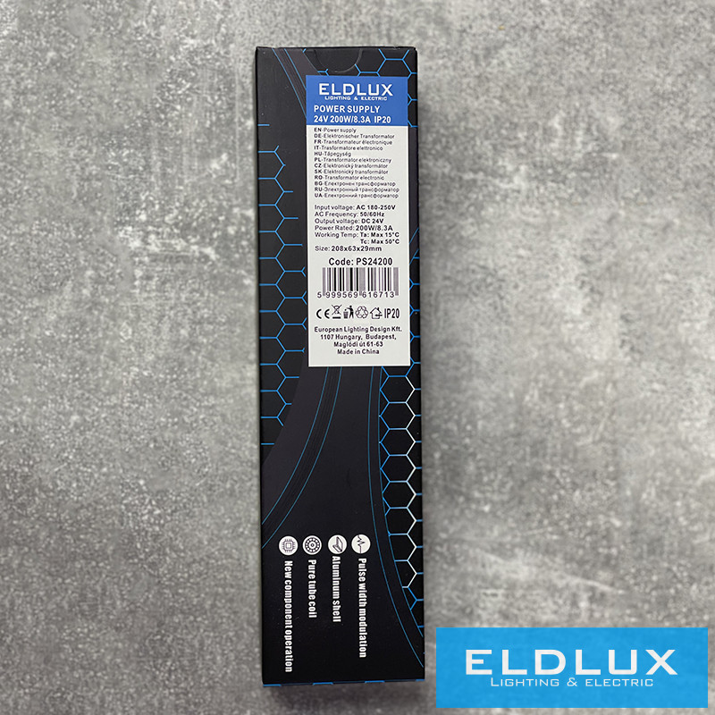 ELDLUX Trafó DC:24V Max.200w/8.33A IP20 208*63*29mm