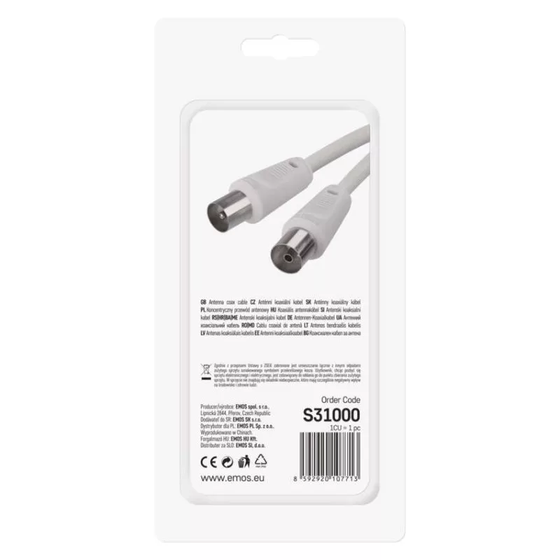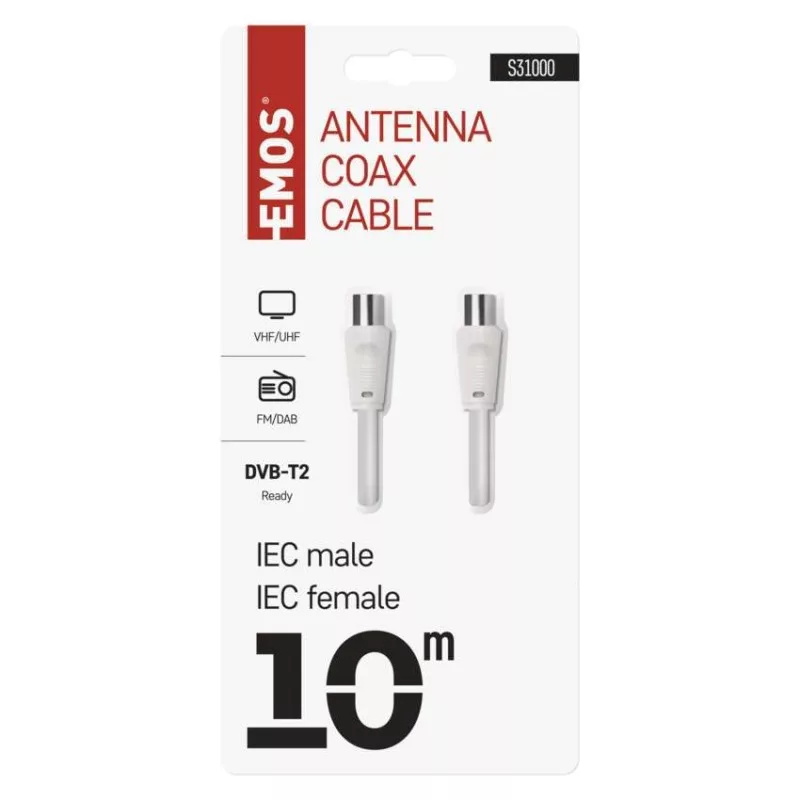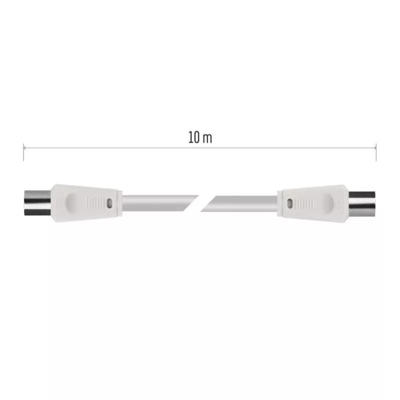 Koaxiális antennakábel IEC csatlakozódugóval és csatlakozóhüvellyel. A kábel kettős árnyékolású az elektromágneses interferencia csökkentése érdekében. 10 m-es kábelhossz.A koaxiális kábel használható műholdvevőhöz, digitális vevőkészülékhez, antennához, átalakítóhoz, síkképernyős tévéhez és hagyományos televízióhoz.