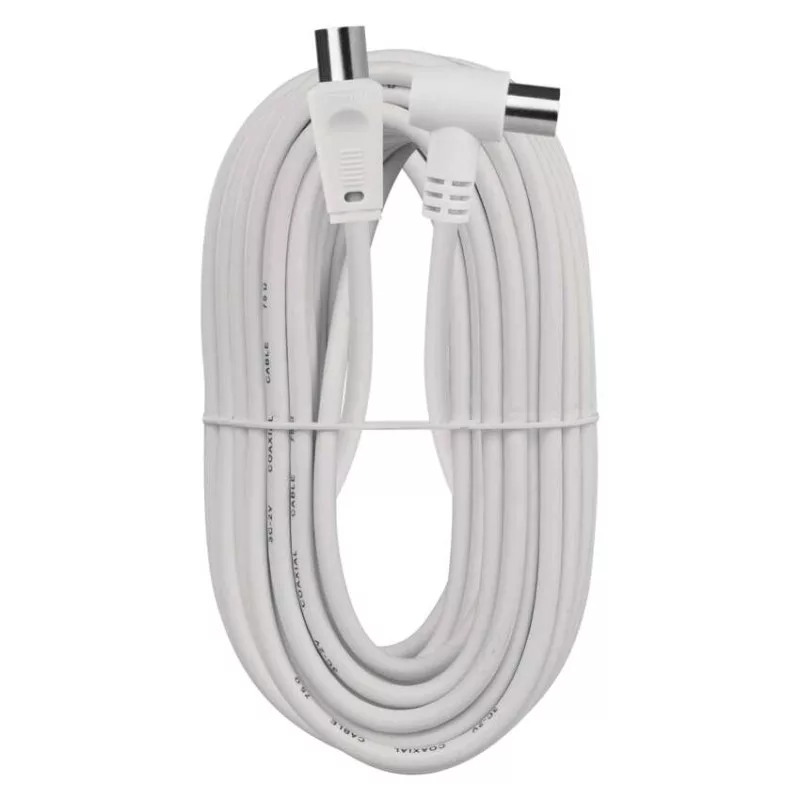 Koaxiális antennakábel IEC csatlakozódugóval és csatlakozóhüvellyel. A kábel 90°-os hajlított csatlakozóval rendelkezik. A kábel kettős árnyékolású az elektromágneses interferencia csökkentése érdekében. 15 m-es kábelhossz.A koaxiális kábel használható műholdvevőhöz, digitális vevőkészülékhez, antennához, átalakítóhoz, síkképernyős tévéhez és hagyományos televízióhoz.