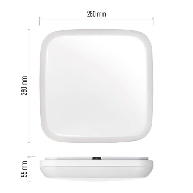 a diffúzor anyaga: műanyag (PC)|a folyosóra és a lépcsőn: igen|a fürdőszobába: igen|a kertre és az erkélyre: igen|a műhelybe és a garázsba: igen|a nappaliba, a hálószobába és a gyerekszobába: nem|áramerősség: 130 mA|áramforrás kimeneti áramerősség: nincs megadva|be a konyhába: igen|diffúzor típusa: tejfehér|élettartam: 25 000 óra|elhelyezés: mennyezet/fali|értékesítési csomagolás: 1 db, doboz|érzékelő hatótávolsága: nincs érzékelő|fényáram: 1 800 lm|fényforrás: LED|fényhasznosítás: 86 lm/W|fény színe: természetes fehér|feszültség: 220–240 V|flicker-free: igen|fogyasztás: 18 W|forma: négyzet|frekvencia: 50/60 Hz|garancia-időszak: 2 év|helyettesítő: 115 W|hivatalba: nem|kategória: CLASSIC|keret színe: fehér|lámpatest: műanyag (PC)|lámpatest típus: klasszikus lámpatest|LGP anyag: nincs megadva|méretek: 280 × 280 × 55 mm|mozgásérzékelő: nem|összeszerelés módja: csatolt|rögzítő nyílás: nincs megadva|sorozat: DORI|sugárzási szög: 115°|színhőmérséklet: 4 000 K|színvisszaadási index (CRI): Ra > 80|távvezérlő: nem|teljesítménytényező: > 0,5|tompító funkció: nem|UGR<: nincs megadva|védettség: IP54