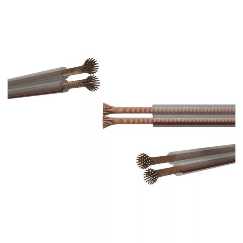 a belső vezeték anyaga: rézzel bevont alumínium (CCA)|a belső vezeték átmérője: 123× 0,16 mm|a belső vezeték szigetelésének színe: nincs|árnyékolás: nem|árnyékoló vezetékek száma: nincs|a vezeték árnyékolásának anyaga: nincs|a vezeték árnyékolásának keresztmetszete: nincs|bevonat anyaga: PVC|csomagolás típusa – hossz: 100 m|értékesítési csomagolás: 100 m, PE fólia|garancia-időszak: 2 év|javasolt alkalmazás: hangszóró csatlakozás|kettős szigetelés: nem|köpeny színe: átlátszó, átlátszó|külső szigetelés: 2× 4,3 mm|maximális üzemi feszültség: 50 V|típus meghatározása: SP250/TP ECO|vezeték keresztmetszet: 2,5 mm²