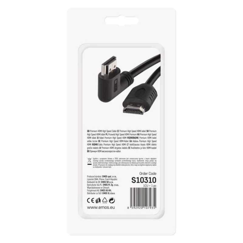 EMOS HDMI kábel 2.0 A-A dugó 90°, 3m