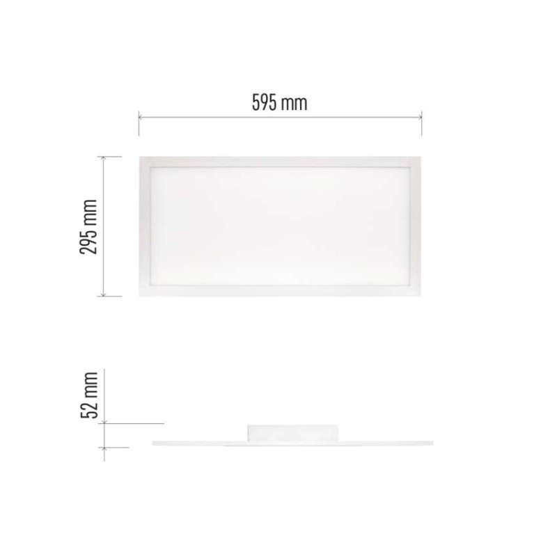 a csomag tartalma: –|a diffúzor anyaga: műanyag (PC)|a folyosóra és a lépcsőn: nem|a fürdőszobába: nem|a kertre és az erkélyre: nem|alkalmazási nyelvek: –|a műhelybe és a garázsba: nem|a nappaliba, a hálószobába és a gyerekszobába: igen|áramerősség: 110 mA|áramforrás kimeneti áramerősség: –|be a konyhába: igen|diffúzor típusa: tejfehér|egyéb funkciók: –|élettartam: 30 000 óra|elhelyezés: mennyezet|értékesítési csomagolás: 1 db, doboz|értesítések a mobilalkalmazáshoz: #|érzékelő hatótávolsága: nincs érzékelő|fényáram: 210–2 100 lm|fényforrás: LED|fényhasznosítás: 85 lm/W|fény színe: meleg fehér–hideg fehér|feszültség: 220–240 V|flicker-free: igen|fogyasztás: 25 W|forma: négyszög|frekvencia: 50/60 Hz|garancia-időszak: 3 év|hangalapú asszisztensek általi vezérlés: #|helyettesítő: –|hivatalba: igen|jelátviteli frekvencia: –|kategória: EXCLUSIVE|keret színe: fehér|kompatibilitás: –|lámpatest: alumínium|lámpatest típus: klasszikus lámpatest|LGP anyag: PS|méretek: 295 × 595 × 52 mm|mozgásérzékelő: nem|összeszerelés módja: csatolt|protokoll: –|rögzítő nyílás: –|sorozat: RIVI|sugárzási szög: 115°|színhőmérséklet: 2 700–6 000 K|színvisszaadási index (CRI): Ra > 80|támogatott OS: –|távvezérlő: igen|teljesítménytényező: > 0,9|tompító funkció: igen|UGR<: 22|védettség: IP20