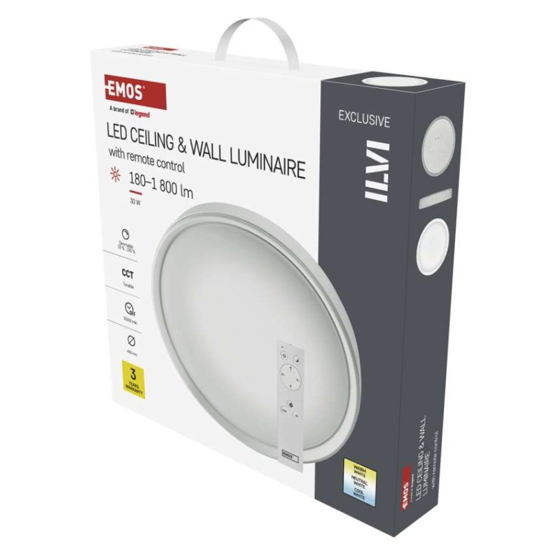 a csomag tartalma: –|a diffúzor anyaga: műanyag (PMMA)|a folyosóra és a lépcsőn: nem|a fürdőszobába: nem|a kertre és az erkélyre: nem|alkalmazási nyelvek: –|a műhelybe és a garázsba: nem|a nappaliba, a hálószobába és a gyerekszobába: igen|áramerősség: 230 mA|áramforrás kimeneti áramerősség: 175 mA|be a konyhába: igen|diffúzor típusa: tejfehér|egyéb funkciók: –|élettartam: 25 000 óra|elhelyezés: mennyezet|értékesítési csomagolás: 1 db, doboz|értesítések a mobilalkalmazáshoz: #|érzékelő hatótávolsága: nincs érzékelő|fényáram: 180–1 800 lm|fényforrás: LED|fényhasznosítás: 60 lm/W|fény színe: meleg fehér–hideg fehér|feszültség: 220–240 V|flicker-free: igen|fogyasztás: 30 W|forma: kör|frekvencia: 50/60 Hz|garancia-időszak: 3 év|hangalapú asszisztensek általi vezérlés: #|helyettesítő: 115 W|hivatalba: igen|jelátviteli frekvencia: –|kategória: EXCLUSIVE|keret színe: fehér|kompatibilitás: –|lámpatest: műanyag (PS) + acéllemez|lámpatest típus: klasszikus lámpatest|LGP anyag: –|méretek: 400 × 70 mm átmérővel|mozgásérzékelő: –|összeszerelés módja: csatolt|protokoll: –|rögzítő nyílás: –|sorozat: ILVI|sugárzási szög: 120°|színhőmérséklet: 2 700–6 500 K|színvisszaadási index (CRI): Ra > 80|támogatott OS: –|távvezérlő: igen|teljesítménytényező: > 0,9|tompító funkció: igen|UGR<: –|védettség: IP20