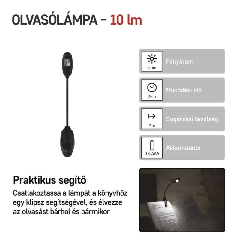 akkumulátor típusa: LR03 (1,5 V)|anyag: műanyag|a töltés LED jelzése: nincs megadva|az akkumulátor állapotának LED-es jelzése: nincs megadva|elem a csomag része: nem|értékesítési csomagolás: 1 db, bliszter|feltöltési idő: nincs megadva|fényáram: LED 100 % – 10 lm, LED 50 % – 6 lm|fényforrás: LED|fókusz: nem|garancia-időszak: 2 év|jellemzők: klipp|márka: EMOS|maximális fényárama: 10 lm|max. világítási távolság: 7 m|méretek: 259 × 20 × 25 mm|speciális funkciók: nincs megadva|súly: 30 g|szín: fekete|táplálás: 1× AAA|tartozékok: nincs megadva|tölthető: nem|töltőcsatlakozó típusa: nincs megadva|ütésállóság: nincs megadva|üzemidő részletezés: 1× LED 100 % – 25 óra, 1× LED 50 % – 35 óra|üzemmódok: LED 100 %, LED 50 %|világítási idő: 25–35 óra|világítási távolság: LED 100 % – 7 m, LED 50 % – 5 m|világítási üzemmódok száma: 2|vízálló: nincs megadva
