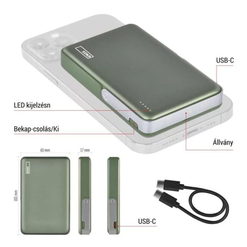 akkumulátor kapacitása: 10 000 mAh/38,7 Wh|akkumulátor típusa: Li-Po 3,87 V|anyag: alumínium|auto ON/OFF: igen|bemeneti interfész típusa: 1× USB-C|értékesítési csomagolás: 1 db, kis papír doboz|feltöltési idő: 2,5 óra|feszültségcsökkenés elleni védelem: igen|garancia-időszak: 2 év|gyors töltéshez: PD 20 W|kábel mellékelve: USB-C/USB-C|kimeneti interfész típusa: 1× USB-C|LED akkumulátor állapot jelző: igen|LED töltés jelző: igen|max.bem. teljesítmény: 18 W|max.kim. teljesítmény: 20 W|méretek: 101 × 65 × 17 mm|passthrough: igen|rövidzárlat elleni védelem: igen|súly: 200 g|szín: zöld|túlterhelés elleni védelem: igen|túltöltés elleni védelem: igen|üzemi hőmérséklet: 0 °C és +40 °C