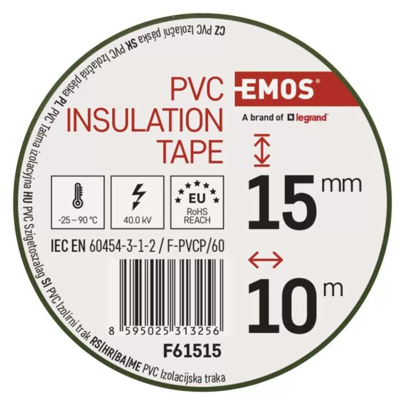 ajánlott tárolási hőmérséklet: 10–45 °C|A REACH irányelveinek megfelelő: igen|A ROHS irányelveinek megfelelő: igen|a szalag szélessége: 15 mm|a szalag vastagsága: 0,13 mm|a tekercs hossza: 10 m|értékesítési csomagolás: 10 db, fólia|integrált szövetháló: nem|javasolt alkalmazás: kábelszigetelés|lángállóság vizsgálat: kevesebb, mint 1 másodperc|maximális megnyúlás: 125 %|megfelel a következő normáknak: ČSN EN 60454-3-1-2/F-PVC/60|méretek: 60 × 15 mm|minimális dielektromos (átütési) szilárdság: 40 kV/mm|minimális dielektromos (átütési) szilárdság nedvesedés után: 35 kV/mm|nyomásálló illesztés létrehozása: nem|nyomtatás: nyomtatás nélkül|önoltó: nem|ragasztóanyag: kaucsuk|szakítószilárdság: 150 N/10 mm|szalag típusa: PVC|szín: zöld/sárga|tapadás acélhoz - minimális: 1,8 N/10 mm|tapadás az anyaghoz: 1,5 N/10 mm|telepítési hőmérséklet-tartomány: -25–90 °C|UV-ellenálló: igen|vízálló csatlakozás: igen