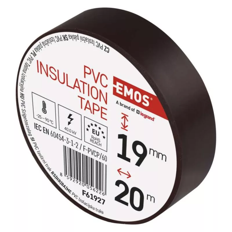 ajánlott tárolási hőmérséklet: 10–45 °C|A REACH irányelveinek megfelelő: igen|A ROHS irányelveinek megfelelő: igen|a szalag szélessége: 19 mm|a szalag vastagsága: 0,13 mm|a tekercs hossza: 20 m|értékesítési csomagolás: 10 db, fólia|integrált szövetháló: nem|javasolt alkalmazás: kábelszigetelés|lángállóság vizsgálat: kevesebb, mint 1 másodperc|maximális megnyúlás: 125 %|megfelel a következő normáknak: ČSN EN 60454-3-1-2/F-PVC/60|méretek: 70 × 20 mm|minimális dielektromos (átütési) szilárdság: 40 kV/mm|minimális dielektromos (átütési) szilárdság nedvesedés után: 35 kV/mm|nyomásálló illesztés létrehozása: nem|nyomtatás: nyomtatás nélkül|önoltó: nem|ragasztóanyag: kaucsuk|szakítószilárdság: 150 N/10 mm|szalag típusa: PVC|szín: barna|tapadás acélhoz - minimális: 1,8 N/10 mm|tapadás az anyaghoz: 1,5 N/10 mm|telepítési hőmérséklet-tartomány: -25–90 °C|UV-ellenálló: igen|vízálló csatlakozás: igen