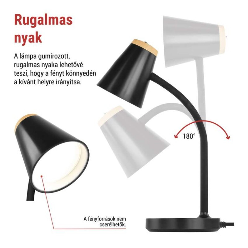 anyag: műanyag|beépített tölthető elem: nem|bemelegedési idő 100 %-ra: nincs megadva|dimmelhetőség: nem|élettartam: 30 000 óra|energiaosztály: G|energiaosztály (2021.9. -től): G|értékesítési csomagolás: 1 db, doboz|fényáram: 280 lm|fény színe: természetes fehér|feszültség: 220–240 V|foglalat: nincs megadva|fogyasztás: 4,5 W|higanytartalom: nincs megadva|kapcsolási ciklusok száma: 20 000|LED chip: SMD|LED-ek száma: 14|max. teljesítmény: 5 W|méretek: 130 × 130 × 360 mm|öregedési tényező: nincs megadva|szín: fekete|színhőmérséklet: 4 000 K|színvisszaadási index (CRI): Ra > 85|tápegység: 220–240 V|tápegység (tartozék): igen|tápellátás típusa: elektromos hálózat|tápkábel hossza: 1,6 m|teljesítménytényező: nincs megadva|USB port: nem|védettség: IP20
