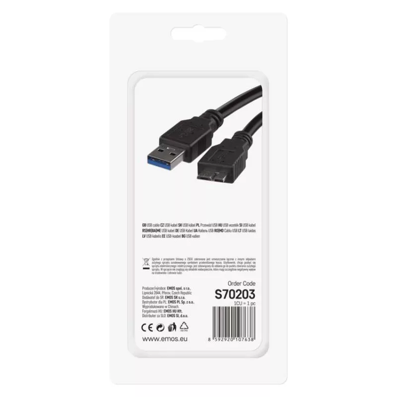 EMOS USB kábel 3.0 A csatlakozó – micro B csatlakozó 1m