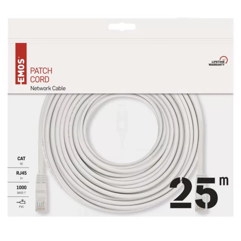 a belső vezeték anyaga: rézzel bevont alumínium (CCA)|árnyékolás: nem|AWG: 26|belső vezető ér átmérője: 0,40 mm|csatlakozók: RJ45/RJ45|csatlakozó védő típusa: öntvény|értékesítési csomagolás: 1 db, PVC csomag|garancia-időszak: 5 év|használat: nincs megadva|hossz: 25 m|kábelátmérő: 5 mm|kábelburkolat vastagsága: 1,1 mm|kábelhez tervezve: nincs megadva|kábel jelölése: UTP Cat5E PVC Patch cable|kábelköpeny: PVC|kábelszerkezet: litz vezeték|kategória: 5E|köpeny kevesebb füstkibocsátással LSZH (LS0H): nem|köpeny színe: szürke (RAL 7035)|legmagasabb támogatott protokoll: 1000 Base-T (Gigabit Ethernet)|maximális üzemi nedvesség: 93 %|rögzítési hőmérséklet: +5 °C és +60 °C|szilárdsági elem: nincs megadva|tárolási hőmérséklet: -20 °C és +60 °C|termék: csatlakozókábel|típus: UTP CAT 5E 25M|tűzveszélyességi osztály: CPR nem vonatkozik rá|veszélyes anyagok: CPR nem vonatkozik rá|vezetékek száma: 8|vezeték szigetelése: HDPE|vezető ér szigetelésének vastagsága: 0,22 mm
