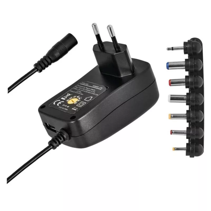 a csatlakozó mérete: B 3,5/15; C 3,0×1,0/10; D 5,0×2,1/12; G 5,5×2,5/10; H 3,5×1,35/10; I 4×1,7/10; S 2,35×0,75/8,7|akkumulátor kapacitása: nincs megadva|akkumulátor típusa: nincs megadva|a következő termékekhez tervezett: univerzális|a LED-es lámpa funkciója: nincs megadva|áramfelvétel - üresjáratban: nincs megadva|bemeneti feszültség: 100–240 V~ 50/60 Hz|értékesítési csomagolás: 1 db, bliszter|kábel: 1,5 m|kimeneti áram: max. 1 500 mA|kimeneti feszültség: 3 V, 4,5 V, 5 V, 6 V, 7,5 V, 9 V, 12 V|LED akkumulátor állapot jelző: nincs megadva|LED jelzőfények: igen|LED töltés jelző: nincs megadva|maximális terhelés – állandó: nincs megadva|maximális terhelés – csúcson: nincs megadva|max. teljesítmény 1 db USB: 5 V/2,0 A/10 W|max. teljesítmény összesen: 5 V/2,0 A/10 W|méretek: 50 × 80 × 32 mm|súly: 120 g|szín: fekete|tápellátás típusa: kábel + DC csatlakozókészlet + kimeneti USB|termék: univerzális forrás pulzáló|töltés: nincs megadva|túlterhelés, túlfeszültség és rövidzárlat elleni védelem: igen|USB kimenetek száma: 1