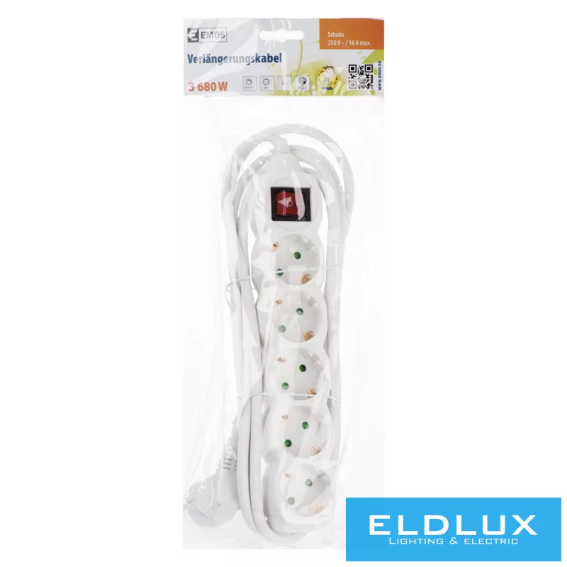 EMOS elosztó (hosszabbító) 5 aljzat 3m 1.5mm² kapcsolható