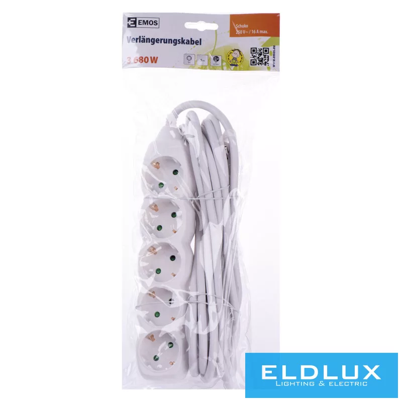 EMOS elosztó (hosszabbító) 5 aljzat 5m 1.5mm² kapcsolható