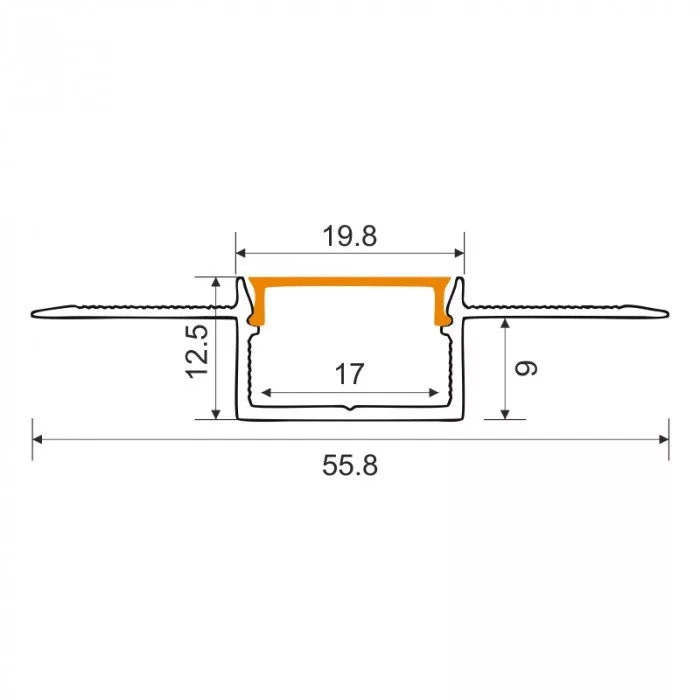 EcoLight Gipszkartonba süllyeszthető aluprofil 17 mm széles 2 méteres szál opál fedővel