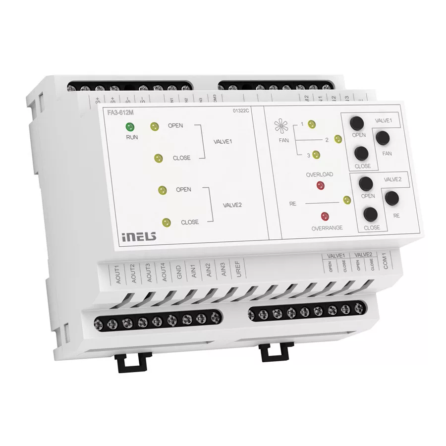 Az FA3-612M aktort Fan Coil egységek vezérlésére tervezték, ehhez felhasználhatók a beépített analóg/ digitális bemenetek és analóg/ relé kimenetek