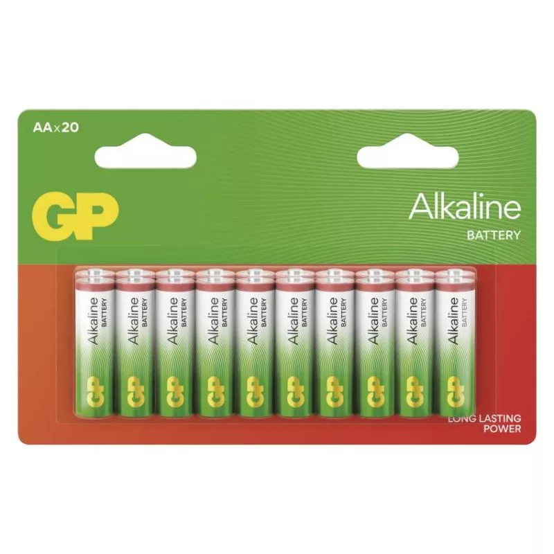 akkumulátor mérete: AA|értékesítési csomagolás: 20 db, bliszter|feszültség: 1,5 V|kapacitás: nincs megadva|kategória/sorozat: Alkaline|kémiai összetétel: alkáli|márka: GP|max. tárolási idő: 10 év|méretek: 14,5 × 50,5 mm|súly: 23 g|típus: LR6 (AA ceruza)|töltési ciklusok száma: nem tölthető|tölthető: nem|üzemi hőmérséklet: -18 °C és +50 °C