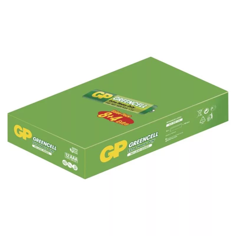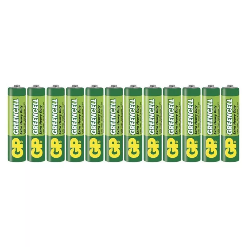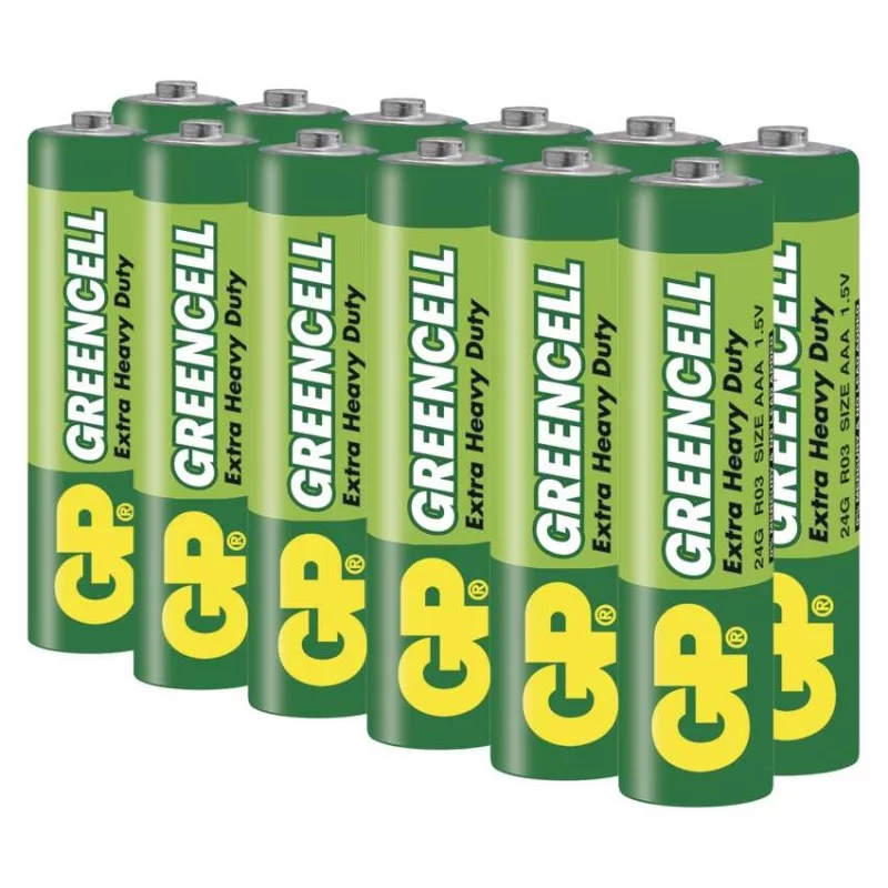 akkumulátor mérete: AAA|értékesítési csomagolás: 12 db, fólia|feszültség: 1,5 V|kapacitás: nincs megadva|kategória/sorozat: Greencell|kémiai összetétel: cink-klorid|márka: GP|max. tárolási idő: 3 év|méretek: 10,5 × 44,5 mm|súly: 8,5 g|típus: R03 (AAA mikroceruza)|töltési ciklusok száma: nem tölthető|tölthető: nem|üzemi hőmérséklet: 0 °C és +45 °C