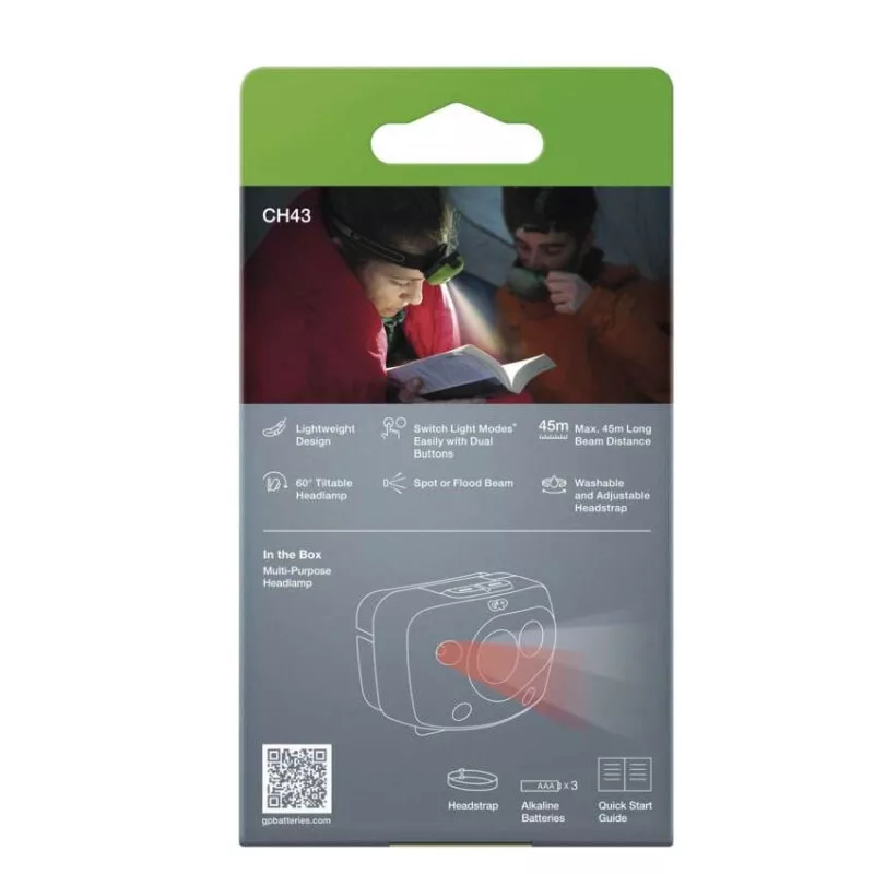 akkumulátor típusa: LR03 (1,5 V)|anyag: ABS műanyag|a töltés LED jelzése: nincs megadva|az akkumulátor állapotának LED-es jelzése: nincs megadva|elem a csomag része: igen|értékesítési csomagolás: 1 db, kis papírdoboz|feltöltési idő: nincs megadva|fényáram: 100 % – 150 lm, 45 % – 65 lm, 25 % – 35 lm|fényforrás: 2× SMD LED + LED|fényvisszaverő szalag: nem|fókusz: nem|garancia-időszak: 2 év|jellemzők: nincs megadva|márka: GP|max. hatótávolság: 45 m|maximális fényáram: 150 lm|méretek: 61 × 47 × 37 mm|speciális funkciók: nincs megadva|sugárzási szög: nincs megadva|súly: 42 g/78 g|szín: zöld-szürke|táplálás: 3× AAA|tartozékok: nincs megadva|tölthető: nem|töltőcsatlakozó típusa: nincs megadva|ütésállóság: 1 m|üzemidő részletezés: #|üzemmódok: #|világítási idő: 36 óra|világítási távolság: 100 % – 45 m, 45 % – 30 m, 25 % – 20 m|világítási üzemmódok száma: 5|vízálló: IPX4