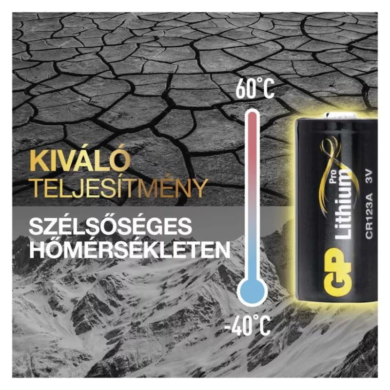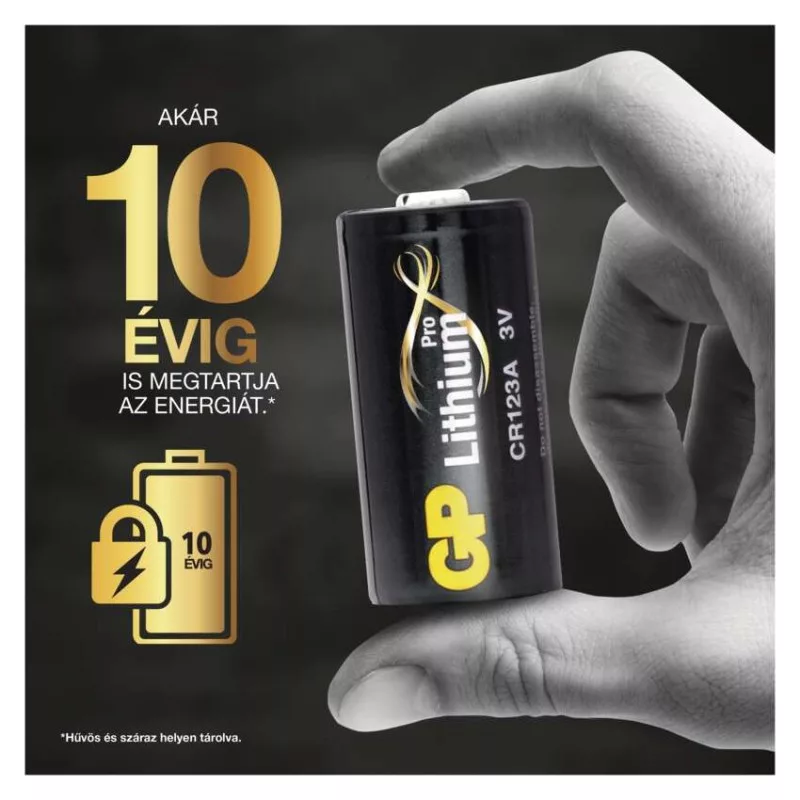 akkumulátor mérete: nincs megadva|értékesítési csomagolás: 1 db, bliszter|feszültség: 3 V|kapacitás: 1 550 mAh|kategória/sorozat: Lithium|kémiai összetétel: lítium|márka: GP|max. tárolási idő: 10 év|méretek: 17,0 × 34,5 mm|súly: 16 g|típus: CR123A (CR123AP, CR17345)|töltési ciklusok száma: nem tölthető|tölthető: nem|üzemi hőmérséklet: -40 °C és +60 °C