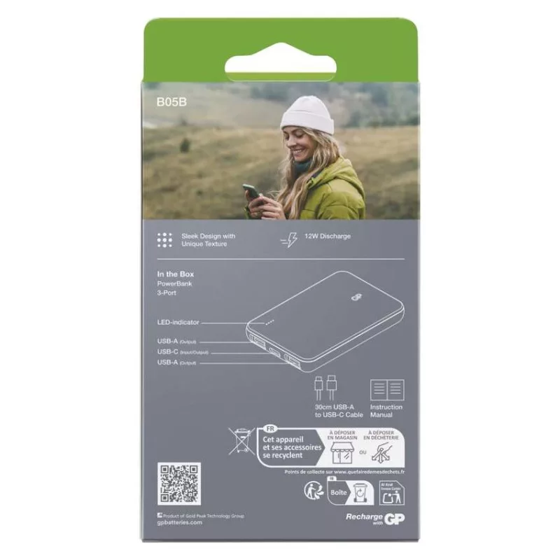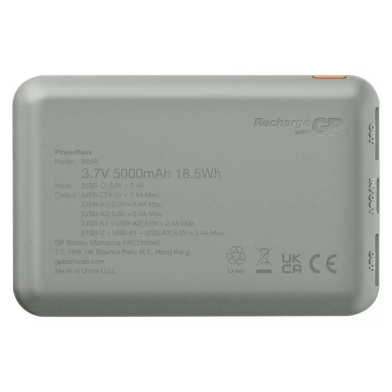 akkumulátor kapacitása: 5 000 mAh/18,5 Wh|akkumulátor típusa: Li-Po 3,7 V|anyag: ABS műanyag|auto ON/OFF: igen|bemeneti interfész típusa: 1× USB-C|értékesítési csomagolás: 1 db, kis papír doboz|feltöltési idő: 3 óra|feszültségcsökkenés elleni védelem: igen|garancia-időszak: 2 év|gyors töltéshez: nem|kábel mellékelve: USB-A/USB-C|kimeneti interfész típusa: 2× USB-A, 1× USB-C|LED akkumulátor állapot jelző: igen|LED töltés jelző: igen|max.bem. teljesítmény: 12 W|max.kim. teljesítmény: 12 W|méretek: 96 × 63 × 14 mm|passthrough: nem|rövidzárlat elleni védelem: igen|súly: 115 g|szín: világosszürke|túlterhelés elleni védelem: igen|túltöltés elleni védelem: igen|üzemi hőmérséklet: 0 °C és +45 °C
