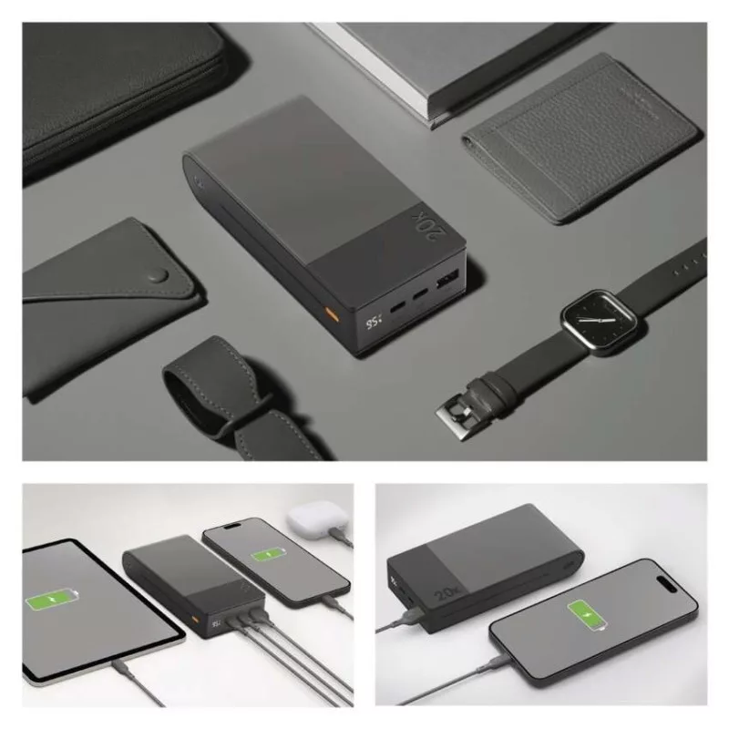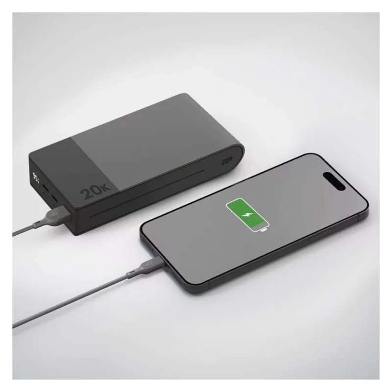 akkumulátor kapacitása: 20 000 mAh/74 Wh|akkumulátor típusa: Li-Po 3,7 V|anyag: ABS műanyag|auto ON/OFF: nincs megadva|bemeneti interfész típusa: 1× USB-C|értékesítési csomagolás: 1 db, kis papír doboz|feltöltési idő: 6,5 óra|feszültségcsökkenés elleni védelem: igen|garancia-időszak: 2 év|gyors töltéshez: PD 22,5 W|kábel mellékelve: USB-A/USB-C|kimeneti interfész típusa: 2× USB-C, 1× USB-A|LED akkumulátor állapot jelző: igen|LED töltés jelző: igen|max.bem. teljesítmény: 18 W|max.kim. teljesítmény: 22,5 W|méretek: 146 × 68 × 29 mm|passthrough: igen|rövidzárlat elleni védelem: igen|súly: 430 g|szín: szürke|túlterhelés elleni védelem: igen|túltöltés elleni védelem: igen|üzemi hőmérséklet: 0 °C és +45 °C