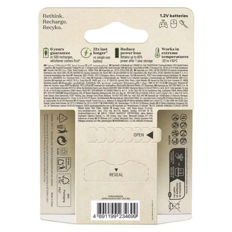 akkumulátor mérete: AAA|értékesítési csomagolás: 6 db, kis papír doboz|feszültség: 1,2 V|kapacitás: 850 mAh|kategória/sorozat: Tölthető|kémiai összetétel: NiMH|márka: GP|max. tárolási idő: nincs megadva|méretek: 14,5 × 50,5 mm|súly: 14,5 g|típus: HR03 (AAA mikroceruza)|töltési ciklusok száma: több, mint 500|tölthető: igen|üzemi hőmérséklet: -20 °C és +50 °C