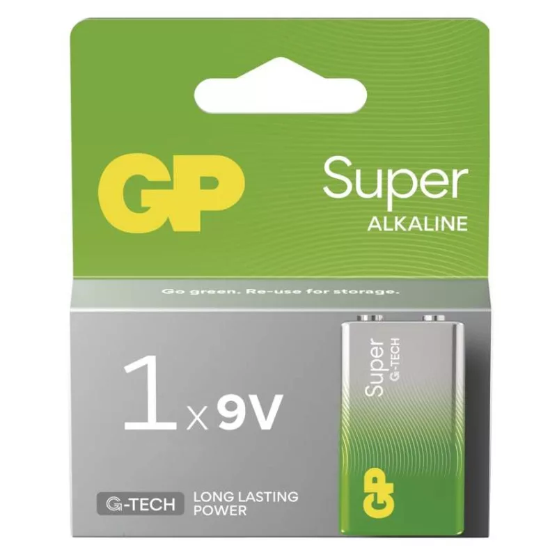 akkumulátor mérete: 9 V|értékesítési csomagolás: 1 db, kis papír doboz|feszültség: 9 V|kapacitás: nincs megadva|kategória/sorozat: Super Alkaline|kémiai összetétel: alkáli|márka: GP|max. tárolási idő: 5 év|méretek: 26,5 × 17,5 × 48,5 mm|súly: 47 g|típus: 6LR61 9 V|töltési ciklusok száma: nem tölthető|tölthető: nem|üzemi hőmérséklet: -18 °C és +50 °C