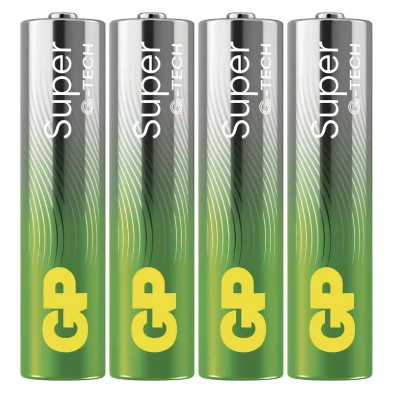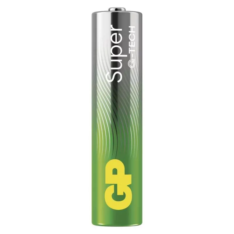 akkumulátor mérete: AAA|értékesítési csomagolás: 4 db, kis papír doboz|feszültség: 1,5 V|kapacitás: nincs megadva|kategória/sorozat: Super Alkaline|kémiai összetétel: alkáli|márka: GP|max. tárolási idő: 10 év|méretek: 10,5 × 44,5 mm|súly: 11,5 g|típus: LR03 (AAA mikroceruza)|töltési ciklusok száma: nem tölthető|tölthető: nem|üzemi hőmérséklet: -18 °C és +50 °C