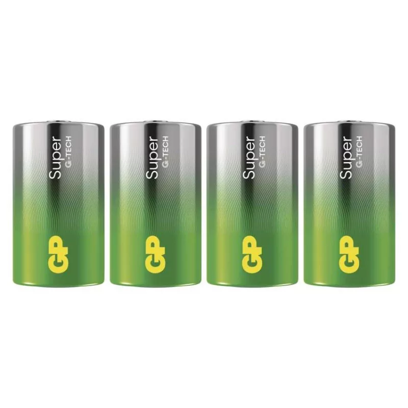 akkumulátor mérete: D|értékesítési csomagolás: 4 db, fólia|feszültség: 1,5 V|kapacitás: nincs megadva|kategória/sorozat: Super Alkaline|kémiai összetétel: alkáli|márka: GP|max. tárolási idő: 10 év|méretek: 34,2 × 61,5 mm|súly: 140 g|típus: LR20 (D góliát)|töltési ciklusok száma: nem tölthető|tölthető: nem|üzemi hőmérséklet: -18 °C és +50 °C