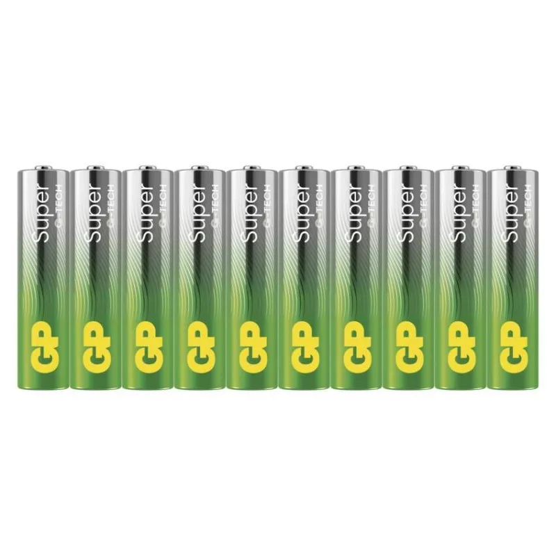 akkumulátor mérete: AAA|értékesítési csomagolás: 10 db, fólia|feszültség: 1,5 V|kapacitás: nincs megadva|kategória/sorozat: Super Alkaline|kémiai összetétel: alkáli|márka: GP|max. tárolási idő: 10 év|méretek: 10,5 × 44,5 mm|súly: 11,4 g|típus: LR03 (AAA mikroceruza)|töltési ciklusok száma: nem tölthető|tölthető: nem|üzemi hőmérséklet: -18 °C és +50 °C