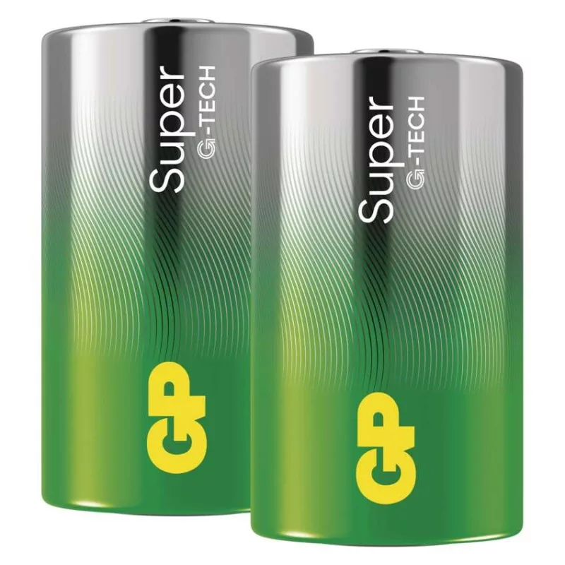 akkumulátor mérete: D|értékesítési csomagolás: 2 db, fólia|feszültség: 1,5 V|kapacitás: nincs megadva|kategória/sorozat: Super Alkaline|kémiai összetétel: alkáli|márka: GP|max. tárolási idő: 10 év|méretek: 34,2 × 61,5 mm|súly: 140 g|típus: LR20 (D góliát)|töltési ciklusok száma: nem tölthető|tölthető: nem|üzemi hőmérséklet: -18 °C és +50 °C