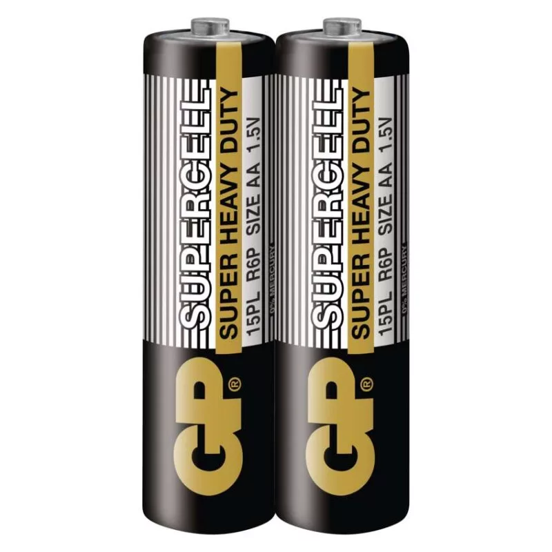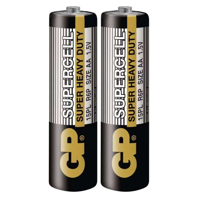 akkumulátor mérete: AA|értékesítési csomagolás: 2 db, fólia|feszültség: 1,5 V|kapacitás: nincs megadva|kategória/sorozat: Supercell|kémiai összetétel: cink-karbon|márka: GP|max. tárolási idő: 3 év|méretek: 14,5 × 50,5 mm|súly: 14,6 g|típus: R6 (AA ceruza)|töltési ciklusok száma: nem tölthető|tölthető: nem|üzemi hőmérséklet: 0 °C és +45 °C
