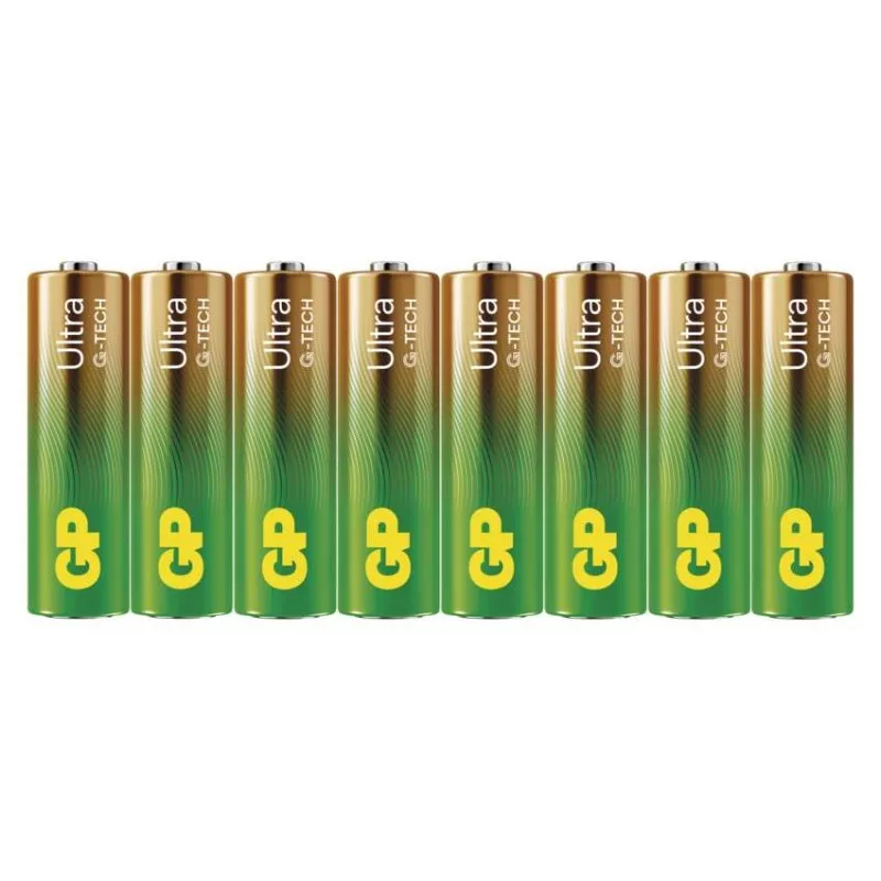 akkumulátor mérete: AA|értékesítési csomagolás: 8 db, kis papír doboz|feszültség: 1,5 V|kapacitás: nincs megadva|kategória/sorozat: Ultra Alkaline|kémiai összetétel: alkáli|márka: GP|max. tárolási idő: 10 év|méretek: 14,5 × 50,5 mm|súly: 23 g|típus: LR6 (AA ceruza)|töltési ciklusok száma: nem tölthető|tölthető: nem|üzemi hőmérséklet: -18 °C és +50 °C