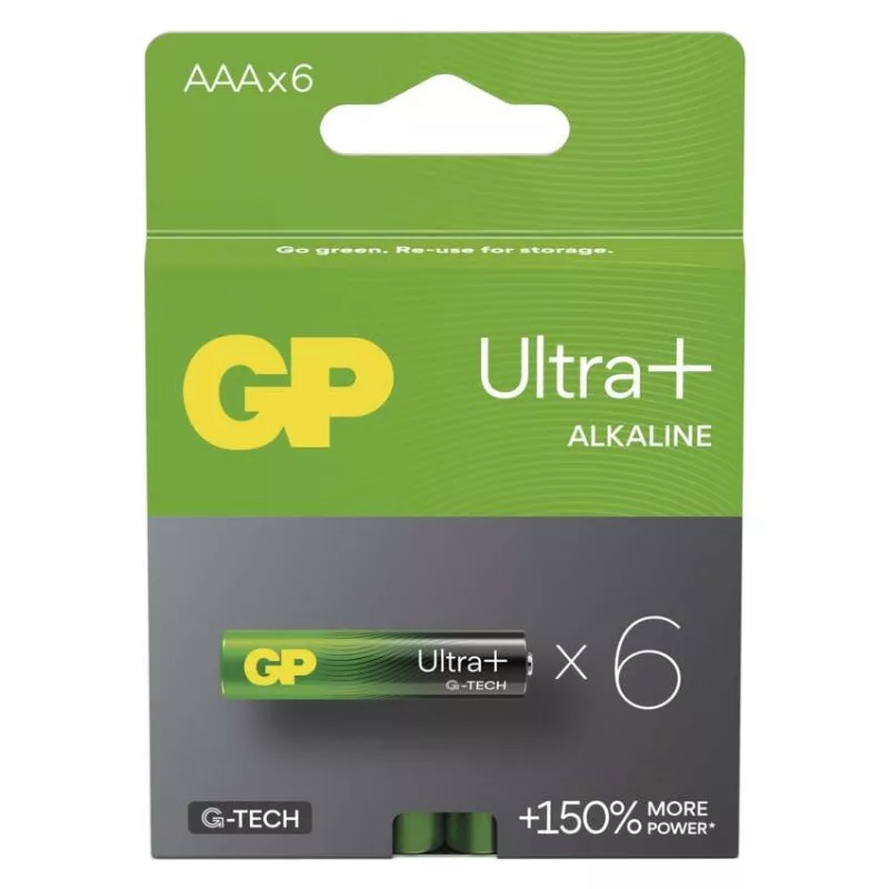 akkumulátor mérete: AAA|értékesítési csomagolás: 6 db, kis papír doboz|feszültség: 1,5 V|kapacitás: nincs megadva|kategória/sorozat: Ultra Plus Alkaline|kémiai összetétel: alkáli|márka: GP|max. tárolási idő: 10 év|méretek: 10,5 × 44,5 mm|súly: 11,5 g|típus: LR03 (AAA mikroceruza)|töltési ciklusok száma: nem tölthető|tölthető: nem|üzemi hőmérséklet: -20 °C és +54 °C