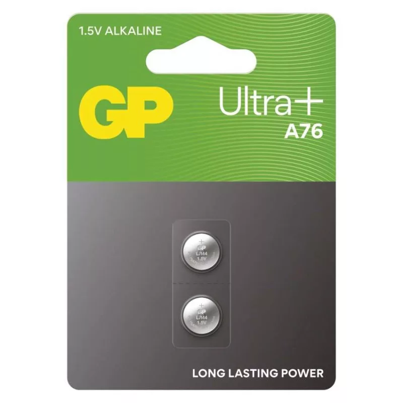 akkumulátor mérete: –|értékesítési csomagolás: 2 db, bliszter|feszültség: 1,5 V|kapacitás: 110 mAh (1,6 kohm-os terhelés esetén)|kategória/sorozat: Ultra Plus Alkaline|kémiai összetétel: alkáli|márka: GP|max. tárolási idő: 3 év|méretek: 11,6 × 5,4 mm|súly: 1,7 g|típus: GP A76F (AG13, LR44, LR1154, V13GA, PX76A)|töltési ciklusok száma: nem tölthető|tölthető: nem|üzemi hőmérséklet: 0 °C és +45 °C