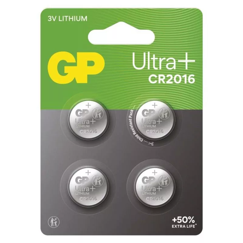 akkumulátor mérete: nincs megadva|értékesítési csomagolás: 4 db, bliszter|feszültség: 3 V|kapacitás: 90 mAh|kategória/sorozat: Lithium|kémiai összetétel: lítium|márka: GP|max. tárolási idő: 10 év|méretek: 20,0 × 1,6 mm|súly: 1,5 g|típus: GP CR2016|töltési ciklusok száma: nem tölthető|tölthető: nem|üzemi hőmérséklet: -20 °C és +60 °C