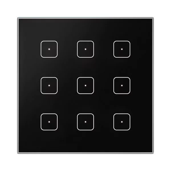 Fekete üveg fali vezérlő 9 érintőgombbal az iNELS BUS rendszer egységeinek vezérlésére - szögletes sarkú változat