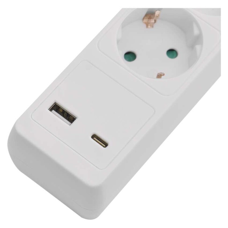aljzatok száma: 5× 2P + PE SCHUKO|alkalmazási nyelvek: –|az aljzatok és dugók anyaga: műanyag|egyéb funkciók: nem|értékesítési csomagolás: 1 db, akasztható|értesítések a mobilalkalmazáshoz: nem|feszültség/áram: 250 V~/16 A max.|gyerekzár: igen|hangalapú asszisztensek általi vezérlés: nem|hossz: 3 m|jelátviteli frekvencia: –|kapcsoló: igen|kompatibilitás: –|max. terhelés: 3 680 W|protokoll: –|szigetelés típusa: PVC|szín: fehér|támogatott OS: –|USB kimenet: 1× USB-A, 1× USB-C, összesen: 3,4 A – 17 W|vezeték: H05VV-F3G 1,5 mm²