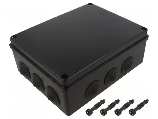 • Termék neve: Kötődoboz, 12 gumi bevezetővel, fekete, 240x190x90mm, IP65, UV-álló