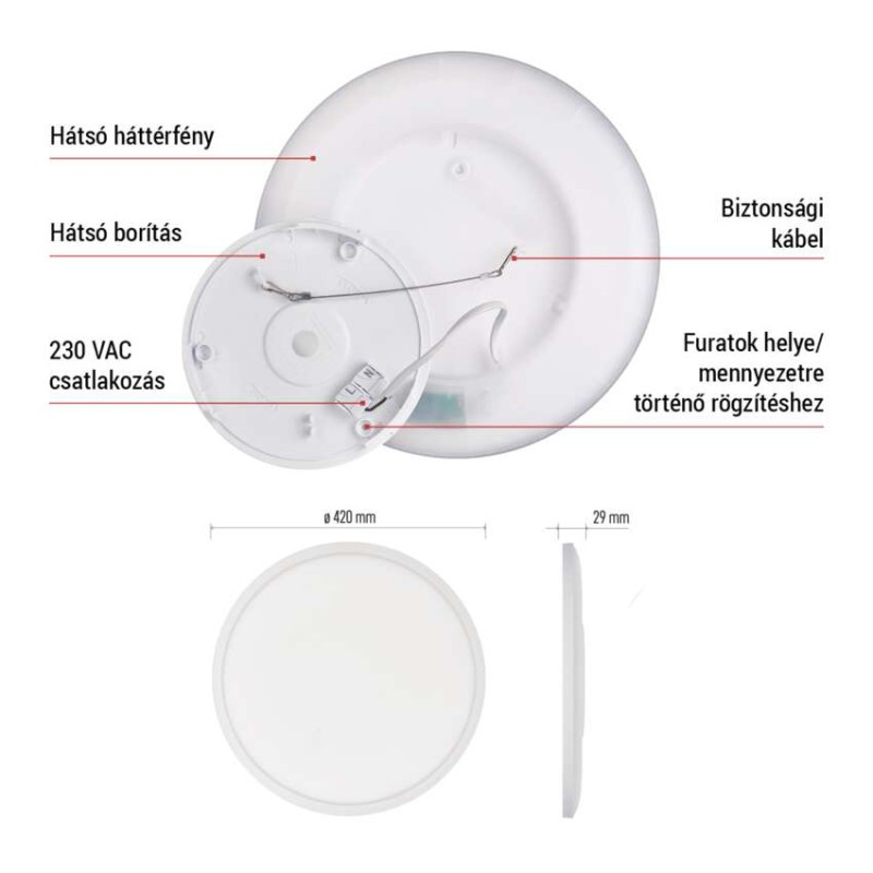a diffúzor anyaga: műanyag|a folyosóra és a lépcsőn: igen|a fürdőszobába: nem|a kertre és az erkélyre: nem|a műhelybe és a garázsba: nem|a nappaliba, a hálószobába és a gyerekszobába: igen|áramerősség: 165 mA|áramforrás kimeneti áramerősség: nincs megadva|be a konyhába: igen|diffúzor típusa: tejfehér|élettartam: 15 000 hodin|elhelyezés: mennyezet/fali|értékesítési csomagolás: 1 db, doboz|érzékelő hatótávolsága: nincs megadva|fényáram: 2 200 lm|fényforrás: LED|fényhasznosítás: 100 lm/W|fény színe: természetes fehér|feszültség: 220–240 V~|flicker-free: nincs megadva|fogyasztás: 22 W|forma: kör|frekvencia: 50/60 Hz|garancia-időszak: 2 év|helyettesítő: 130 W|hivatalba: nem|kategória: ESSENTIAL|keret színe: fehér|lámpatest: műanyag|lámpatest típus: klasszikus lámpatest|LGP anyag: nincs megadva|méretek: 420 × 29 mm átmérővel|mozgásérzékelő: nem|összeszerelés módja: csatolt|rögzítő nyílás: nincs megadva|sorozat: FLORI|sugárzási szög: 110°|színhőmérséklet: 4 000 K|színvisszaadási index (CRI): Ra > 80|távvezérlő: nem|teljesítménytényező: > 0,5|tompító funkció: nem|UGR<: nincs megadva|védettség: IP20