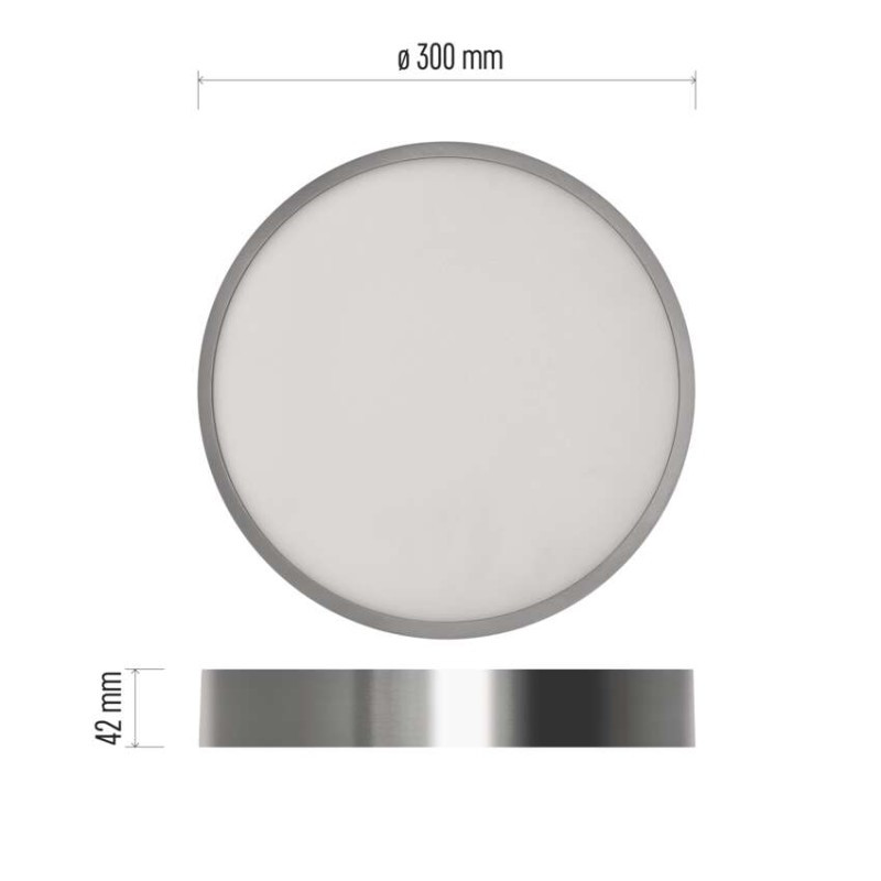 a diffúzor anyaga: műanyag (PMMA)|a folyosóra és a lépcsőn: igen|a fürdőszobába: nem|a kertre és az erkélyre: nem|a műhelybe és a garázsba: nem|a nappaliba, a hálószobába és a gyerekszobába: igen|áramerősség: 700 mA|áramforrás kimeneti áramerősség: nincs megadva|be a konyhába: igen|diffúzor típusa: tejfehér|élettartam: 30 000 óra|elhelyezés: mennyezet/fali|értékesítési csomagolás: 1 db, doboz|érzékelő hatótávolsága: nincs érzékelő|fényáram: 2 700 lm|fényforrás: LED|fényhasznosítás: 95 lm/W|fény színe: meleg fehér-semleges fehér|feszültség: 220–240 V|flicker-free: igen|fogyasztás: 28,5 W|forma: kör|frekvencia: 50/60 Hz|garancia-időszak: 3 év|helyettesítő: 160 W|hivatalba: igen|kategória: PROFI|keret színe: szálcsiszolt nikkel|lámpatest: acéllemez|lámpatest típus: klasszikus lámpatest|LGP anyag: PMMA|méretek: 300 × 42 mm átmérővel|mozgásérzékelő: nem|összeszerelés módja: csatolt|rögzítő nyílás: nincs megadva|sorozat: NEXXO|sugárzási szög: 120°|színhőmérséklet: 3 000/3 500/4 000 K|színvisszaadási index (CRI): Ra > 80|távvezérlő: nem|teljesítménytényező: > 0,9|tompító funkció: nem|UGR<: nincs megadva|védettség: IP40/IP20